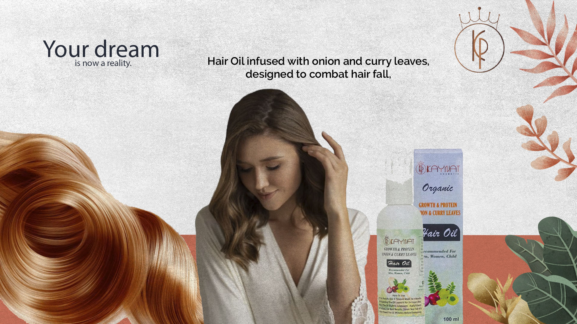 100 ML of Hair Oil infused with onion and curry leaves, designed to combat hair fall, promote hair growth, and nourish with protein. Suitable for Men, Women, and Children.