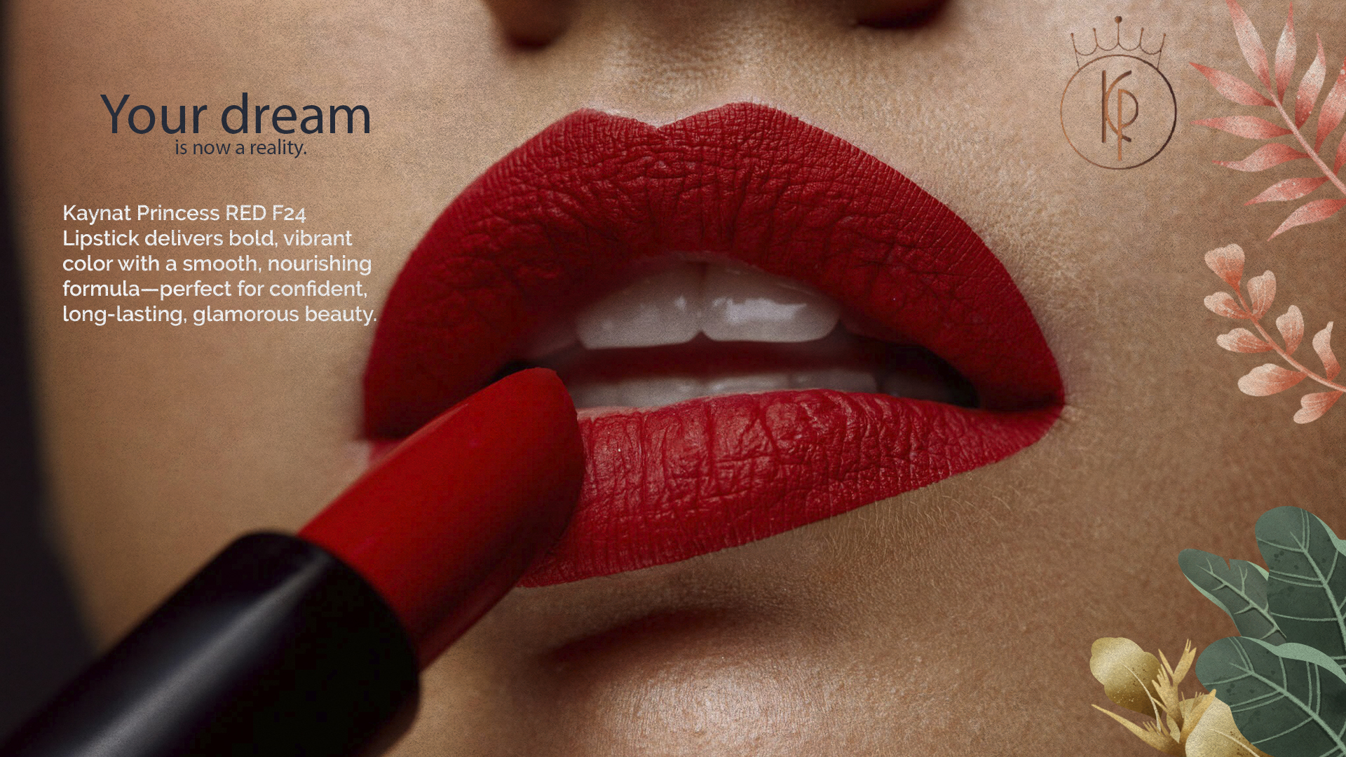 Kaynat Princess's Matte lipsticks are Long-lasting, Waterproof, Smudgeproof, Made with Vitamin E, Shea Butter, Natural Vegetable & Fruit Colors. Which protects your lips from cracking, black and pigmentation. When it merges with your body temperature it changes color according to your skin tone!! An enchanting quality that allows you to express your style and confidence in various ways whether you opt for Hot Pink, Red F24, Rose Kiss, Rose Cliff, Wine Brown & Wine Lavender , these shades are sure to become your beauty staples, ready to transform your look with every application. Embrace elegance, make a statement, and let your lips steal the spotlight with matte lipstick.